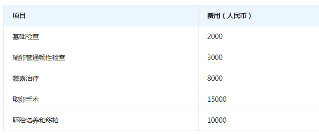 下表是2024年三亚地区试管各项费用明细: